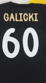 Close-up of a sports jersey with the name 'GALICKI' and the number '60' on the back.