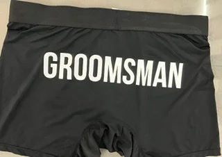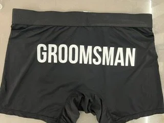 Black underwear with the word 'GROOMSMAN' printed in white.