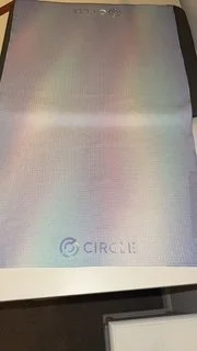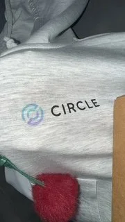 A close-up of a computer or tablet screen with the Circle logo at the bottom, displaying a gradient background.